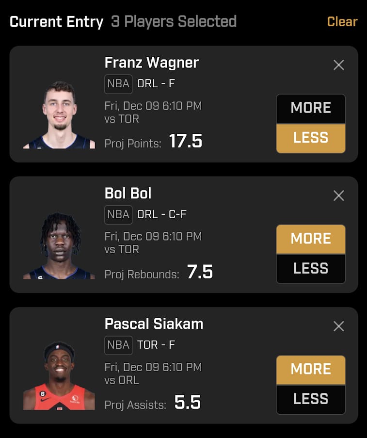 PrizePicks entries are as simple as it gets and can be done in 60 seconds or less. All you have to do is choose 2-6 players, guess if they will get more or less than their projection for a given stat, and then sit back and enjoy the high-octane NBA action.