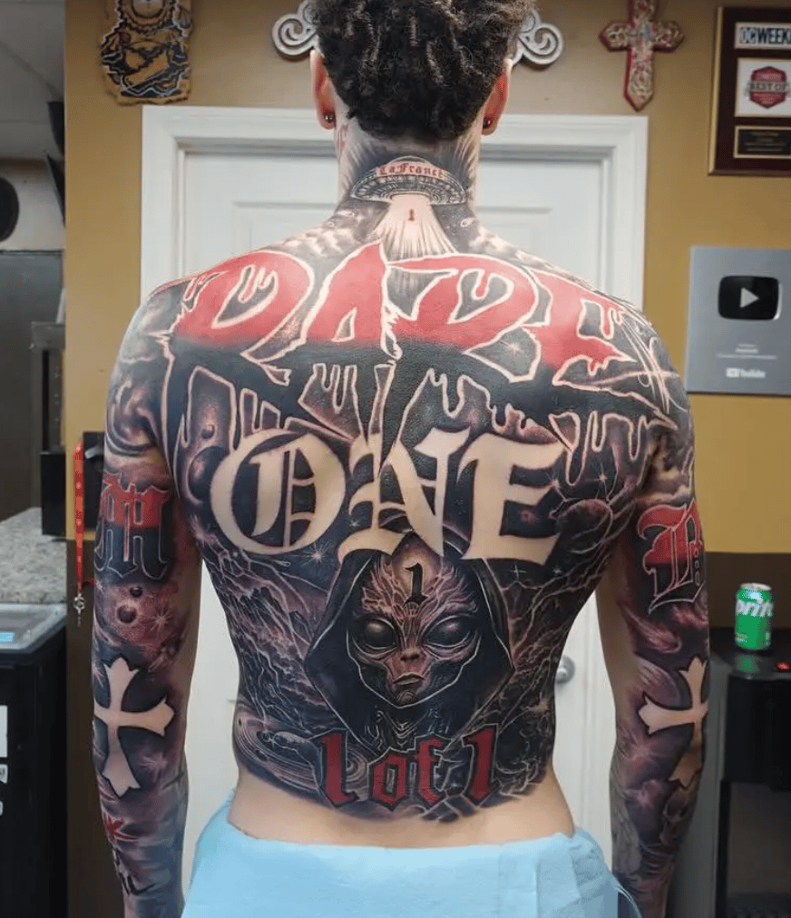 It’s no secret that LaMelo—or any of the Ball brothers—likes his style. As a teenager, the dude wore a grill and drove a Lamborghini and that was before the multimillion dollar NBA contract, shoe deals, and sponsorships. But with all that cash, Melo really spend his VC to upgrade his tattoo game. Take a look: