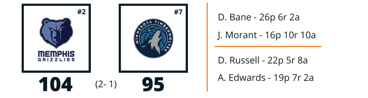 If Minnesota wants to get back into this series, they need to find a way to get KAT going. Four shots in a playoff game is nowhere near enough for your franchise player. Either find some ways to get him open looks, or make Memphis pay for double teaming so aggressively.