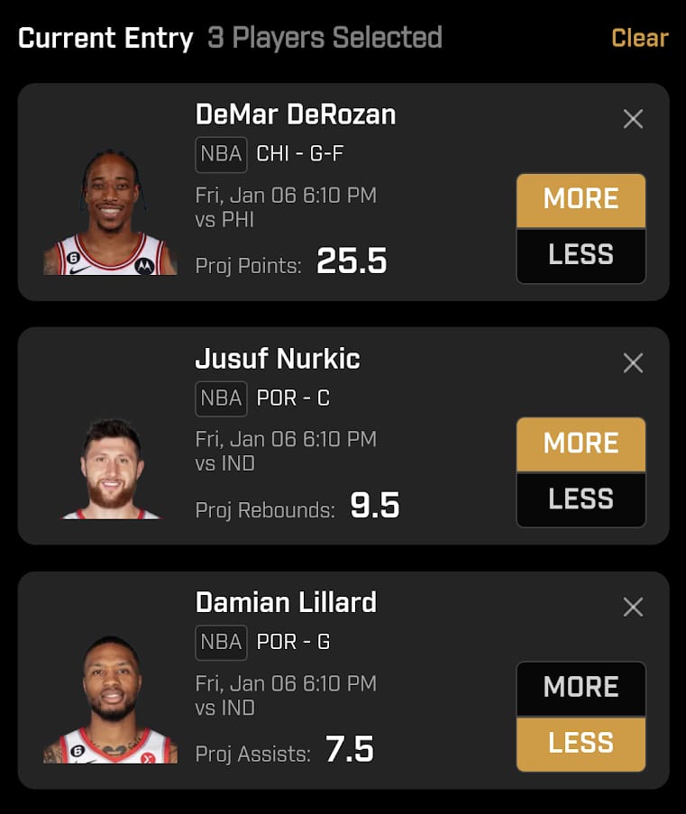 PrizePicks entries are simple and straightforward, and can be done in 60 seconds or less. All you have to do is select 2-5 players, guess if they will get more or less than their projection for a given stat, and then sit back and enjoy the action.