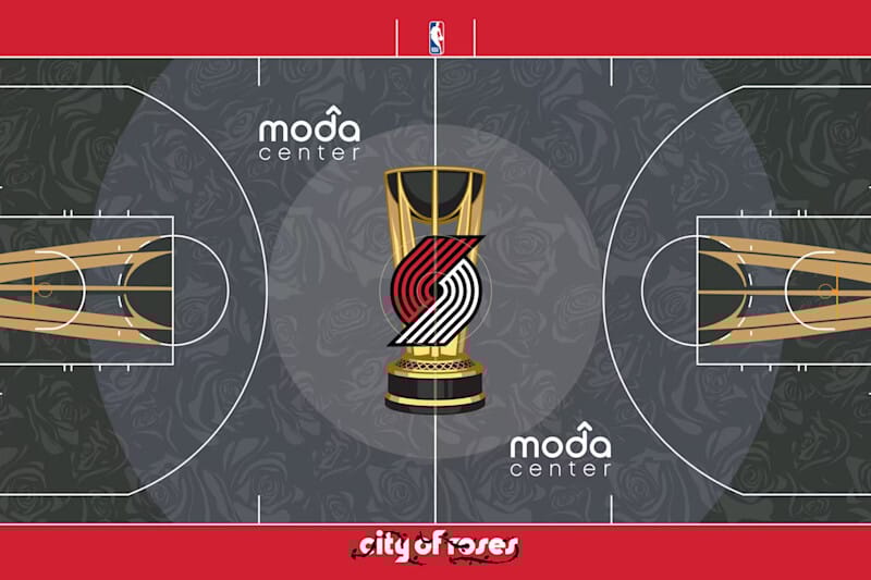 The Trail Blazers rolled out this beauty of a court. The greyscale complements the red, white, and gold of the Trail Blazers logo and cup perfectly, but the 10/10 touches are the rose silhouettes scatted across the court to honor Portland’s nickname—the City of Roses.