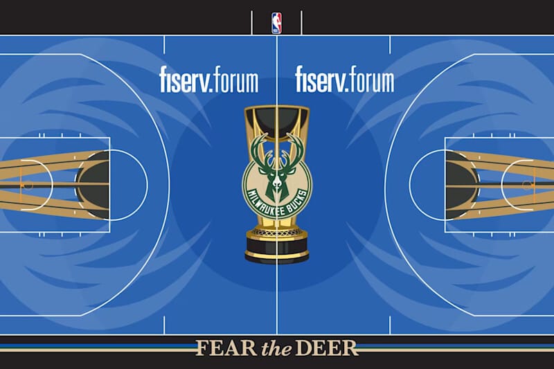And even though some fans complain when teams steer away from their traditional color scheme, we really like what Milwaukee has been doing with this blue theme for the past few years. The pairs of antlers arcing out to the three-point line is a fun touch too. 🦌