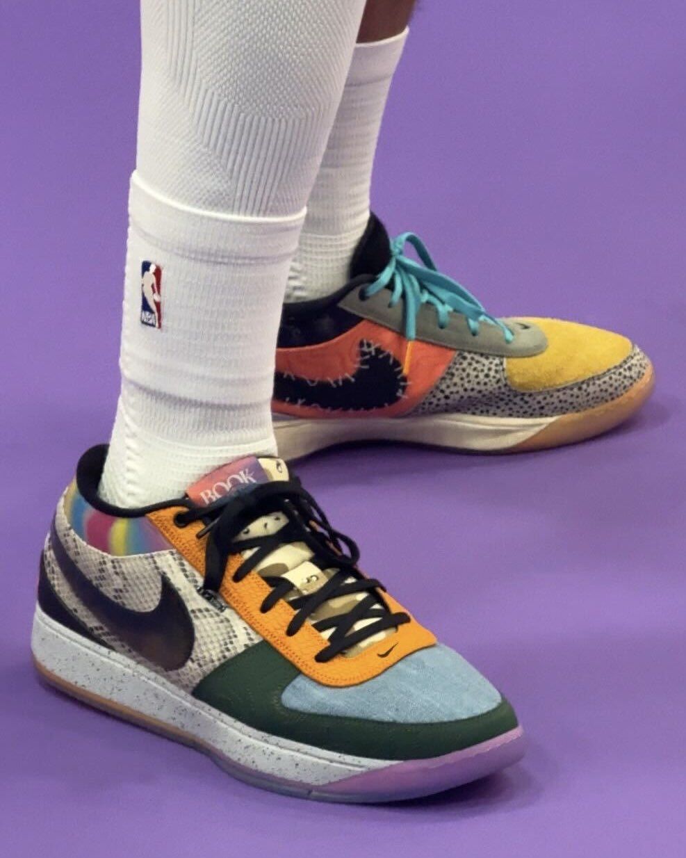 The Book 1s are one of our favorite hoop shoes of the last few years. They strike the balance between hoops-grade performance and the stability reminding us of an AF1. On media day 2025, Devin Booker wore the wackiest version of them yet: the “What The” colorway.