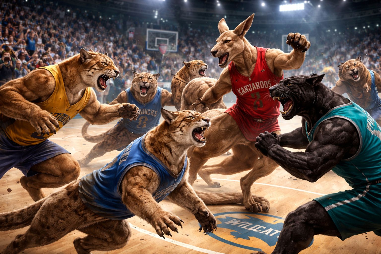Lots of cougars (Houston, BYU), panthers (High Point, UNI) and wildcats (Arizona, Kentucky) would go far. Some religious people would refuse to fight, like the Siena Saints or UPenn Quakers. Our dark horse would be the Akron Zips, which are a type of kangaroo, as they can literally box on hind legs 🦘🥊
