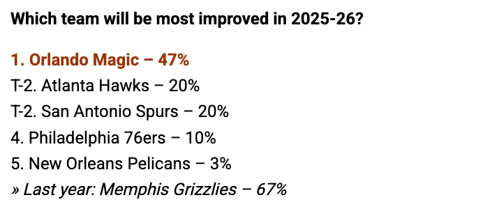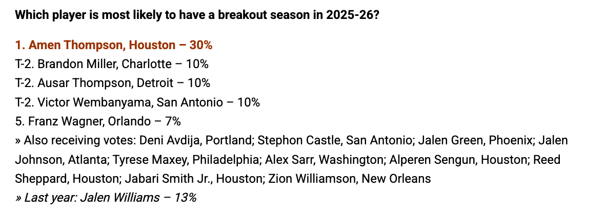 Thereās more to see in the full survey, like which teams had the best offseasons, the best international players (inside AND outside the NBA), and the biggest steals coming out of the 2025 NBA Draft. Enjoy!